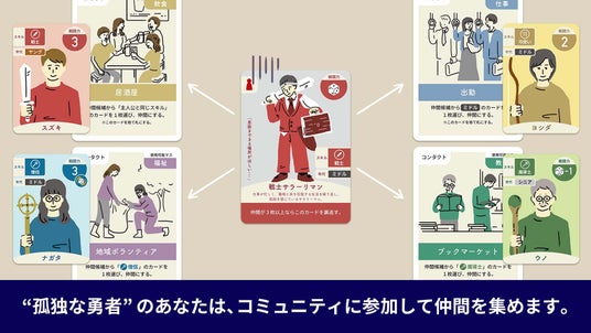 ▲ 様々な理由で孤独・孤立を感じている勇者(主人公カード)コミュニティに参加して仲間を集めると孤立状態が解消され、本来の力を発揮
