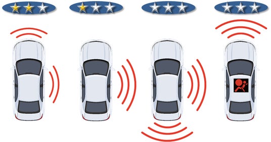 過去のEDR記録データをすべて解析し、記録された衝撃レベル、入力方向、エアバック作動等の情報より、車体へのダメージについて当協会の定める基準により、シンプルで誰にでもわかりやすい表示方法で判定します。大きな衝撃レベルの記録については車体ダメージがある結果となり、小さい衝撃レベルが複数記録されていても車体へのダメージがないものとして判定されます。