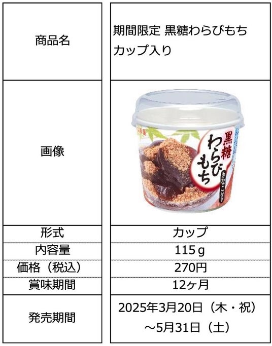 「期間限定 黒糖わらびもち カップ入り」~2025年3月20日(木・祝)から5月31日(土) 期間限定発売~