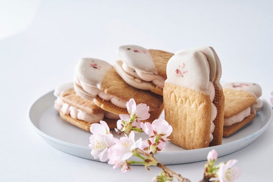 手づくりの過程と素材にこだわり、食材本来のおいしさととろける口溶けが魅力の『フェアリークリームウィッチ』シリーズより、期間限定「サクラ生バターサンド」が登場。生クリーム入りのバタークリームに、桜の塩漬けを細かく刻んで練り込んだ風味豊かな〈桜あん〉を合わせ、ホワイトチョコレートでハーフコーティングした香ばしいビスケットで一つ一つ丁寧に挟みました。ミルキーなバターのコクに桜の塩気がほんのりと効いた、なめらかな甘じょっぱい味わい。淡いサクラ色が愛らしく、見た目も味わいも上品な春限定のスイーツです。