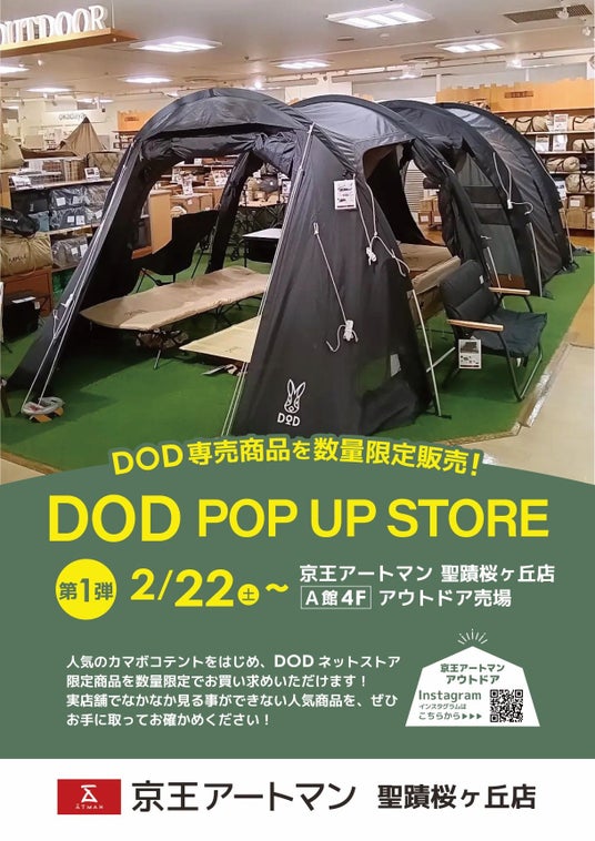 京王グループでコスメを中心に生活雑貨を販売する株式会社京王アートマン(本社:東京都多摩市、以下 京王アートマン)は、2025年2月22日(土)から京王アートマン 聖蹟桜ヶ丘店4階 アウトドア売場にてDODネットストア限定商品を数量限定で店頭販売しております。
