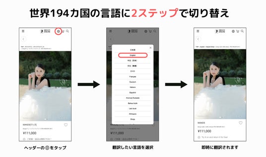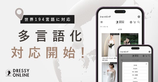 ウェディングアイテムを取り扱うECサイト『DRESSY ONLINE』は、このたび1世界194言語に対応した多言語化を完了し、世界中のお客様が自国の言語でスムーズにショッピングを楽しんでいただけるようになりました。