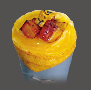 クレープの中には、桜の香りが広がるクリームと抹茶のアイス、甘酸っぱい苺のコンポートなどを入れ食べ進めるごとに味の変化を感じられるつくりとなっています。またきなこで包んだくるみなどを入れ食感も楽しめる工夫をしております。
