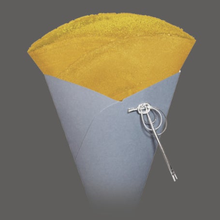 「たばねのし」のもう一つの特徴は、その繊細な包装です。クレープを包む包装紙には、石川県が誇る加賀水引が飾られています。五代目職人である津田六佑さんがひとつひとつ丁寧に手作りした水引は、伝統の技を現代に生かし、和の美しさを視覚でも感じていただけます。贈り物としても喜ばれる、その美しい包装も「たばねのし」の魅力の一部です。
