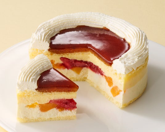 香ばしく艶やかなカラメルグラサージュと、優しい甘みのカスタードシャンティが加わり、コク深く、口どけなめらかにとろけます。純喫茶に出てくるようなプリンアラモードを、ひとつのケーキに仕立てました。