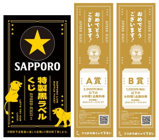 サッポロ生ビール黒ラベルの各種サイズを1杯ご注文につき素敵な景品があたる 「特製黒ラベルくじ」(注2)を1枚プレゼント!
