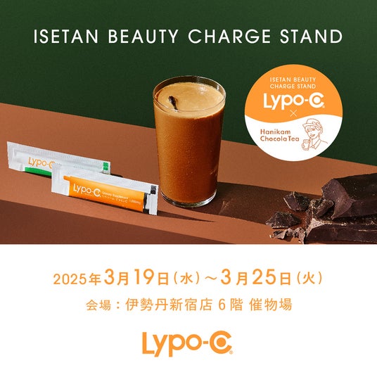 株式会社スピック(鎌倉市、代表取締役 芝田崇行)は、2025年3月19日(水)~3月25日(火)の7日間、伊勢丹新宿店本館6階催物場で開催される”ISETAN BEAUTY WEEK 2025”にLypo-C ブース「ISETAN BEAUTY CHARGE STAND」を出展します。本ブースでは、Lypo-C 30包入 2 種類の販売に加え、ミツバチプロダクツ株式会社が展開するチョコレートドリンク専門店 Hanikam Chocola Teaとコラボレーションした、限定ドリンクのビタミンたっぷりLypo-C付き「美活 Hanikam Choco」を販売します。さらに同期間中には、Lypo-C 公式インスタグラムで皆さまの翌朝の実感を募集する企画も行います。