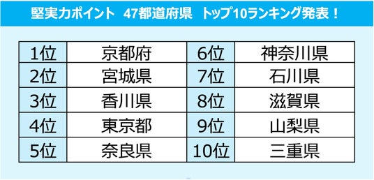 堅実力ポイントランキング1位は『京都』 お金に関する堅実力ポイントが高かった!