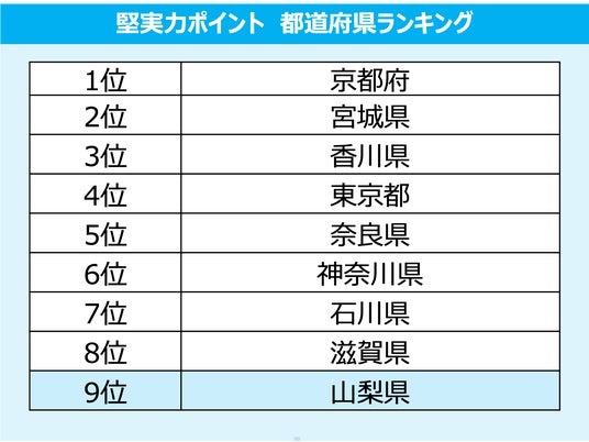「堅実な人が多いと思う県」の投票率47位の『山梨』は、堅実力ポイントランキング9位とギャップ!