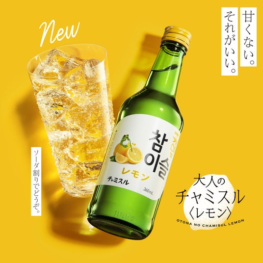 韓国No.1ソジュ「チャミスル」の新フレーバー「チャミスル レモン」を、お肉に合わせてさっぱり飲めるソーダ割り「チャミボール」でお楽しみください。甘くない、新しい「大人のチャミスル」です。
