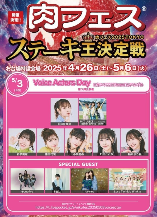5月3日(土)は「Voice Actors Day」、5月4日(日)は「アニソン&アキバカルチャーDAY 2皿め」、5月6日(火・祝)には「NIKU ROCK FES」の開催が決定しました!