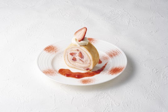 - 商品名/価格 (税込):「クレープロール いちごとホワイトチョコレート」/930円※表示価格は消費税10%を含む税込価格です(テイクアウトご利用の場合、8%の消費税となります)。