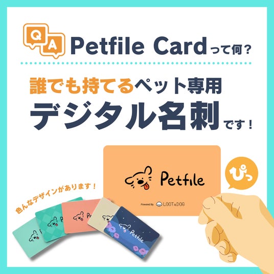 お散歩中やオフ会、ペットイベントなど、ペットと暮らしていると様々な出会いが訪れます。「Petfile Card」は、SNSやインターネット上の繋がりが増えた現代において、一つ一つの出会いをより大事にし、かけがえのないものにできればという思いから誕生しました。
