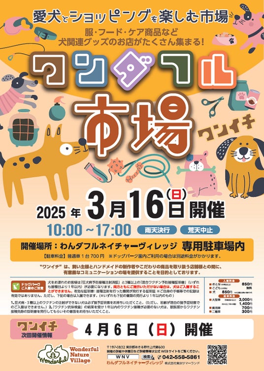 株式会社PetFileは、わんダフルネイチャーヴィレッジにて開催される「ワンダフル市場」にPets Tokyo株式会社と共同出店いたします。