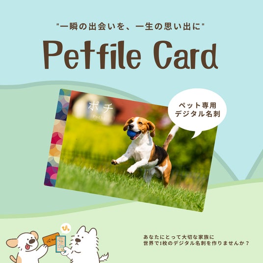 ペット専用デジタル名刺「Petfile Card」の開発・販売を行う株式会社PetFile(本社:東京都)は、わんダフルネイチャーヴィレッジにて開催される「ワンダフル市場」にPets Tokyo株式会社(本社:東京都)と共同出店いたします。当イベントでは、ペットオーナー様同士での温かなコミュニケーションを促進し、より思い出に残るイベントへの一助となるべく、イベント参加者へ「Petfile Card」をプレゼントいたします。