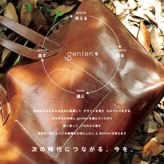 “人間も自然の一部である”という原点に立ち返り、環境を大切にした暮らしを、鞄づくりを通じて発信するブランドとして、 1999年に3つの基本理念を掲げて “genten”は始まりました。