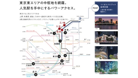 本物件が位置する「入谷」は、上野・浅草といった東京屈指の観光エリアにほど近く、多彩な魅力を享受できるエリアです。周辺には歴史あるスポットが点在し、ノスタルジックな下町の雰囲気と都市の利便性が融合した希少なライフステージを形成しています。