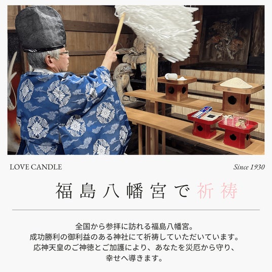 成功勝利の御利益のある神社にて祈祷していただいています。応神天皇のご神徳とご加護により、あなたを災厄から守り、幸せへ導きます。