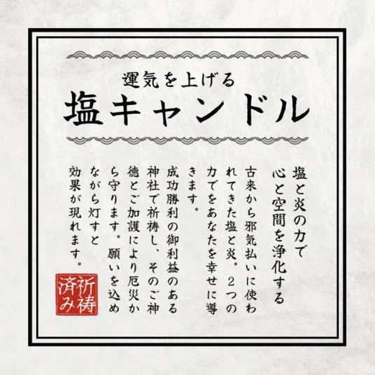 「塩」「炎」「祈り」の3つの力で邪気払い、運気をアップします。