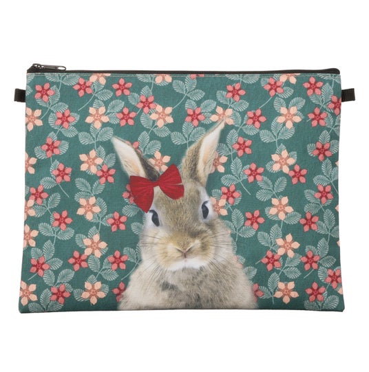 リュシー・ダンセットはフランスのファブリックデザイナー。動物の顔をモチーフに、オリジナルのテキスタイル模様を背景にしたポップなデザインが人気です。ラージポーチは、手持ちバッグとして使用したり、お手持ちのストラップを通せばサコッシュとしても使用可能です。