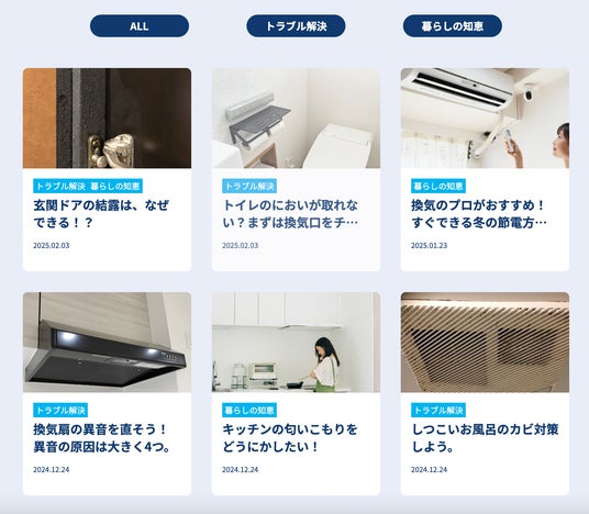 kanki LABO公開から約1か月経過した現在では、特にニーズの多い換気トラブルのテーマで、6つの記事を掲載中。今後も随時、記事の追加を予定しています。
