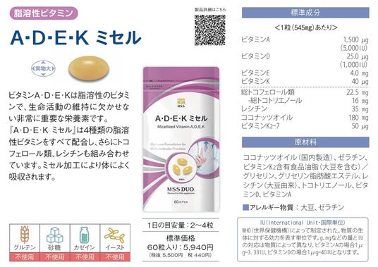 ・対象製品:MSSDUO『A・D・E・K ミセル』