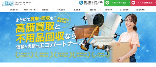エコパートナーズは、横浜において豊富な高価買取の実績を持つ出張買取です。買取成約率は90%以上に及び、累計査定件数は1万円以上を誇ります。