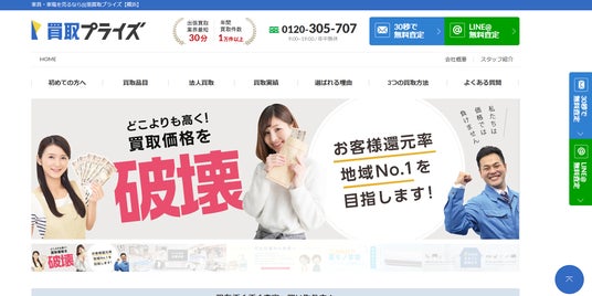 買取プライズは、主に家具や家電の買取に対応している出張買取業者です。商品知識豊富な査定スタッフが対応するため、一つひとつの査定の質が高く、高価買取も期待できます。