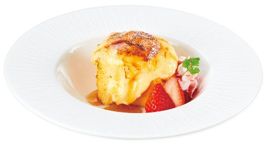 ふわふわシフォンケーキの上にたっぷりのカスタードクリームをかけて、ブリュレ仕立てにしました。