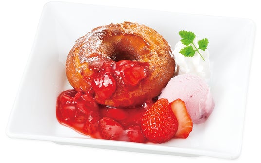 ・揚げたてドーナツとつぶつぶ果肉のストロベリーアイス(税込494円)