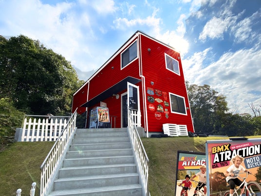 【チャーリーズ・マウンテン エリアイメージ】エリア内に足を踏み入れると、レトロでビビットな装飾物やひときわ目を引く真っ赤な建物など、マウンテンバイクが誕生した1970年代アメリカ・サンフランシスコの世界感を感じることができます。
