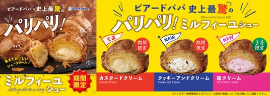 ぜひこの機会に定番のカスタードクリームや季節を感じるクリームの組み合わせとの出会いを、ビアードパパ史上最“驚”のパリパリ食感とともにお楽しみください。