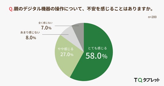 TQコネクト株式会社(本社:東京都渋谷区、代表取締役社長:五木 公明)は、現在介護を必要とする親がいる60~70代の方(同居中を除く)を対象に、「介護世帯の不安とデジタルツール活用に関する調査」を実施し、200名から回答を得ました。