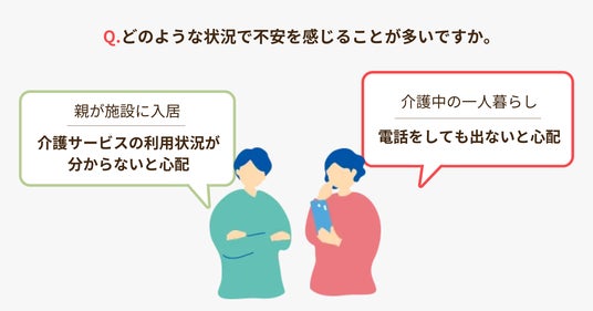 介護世帯において、顔を見てのコミュニケーションが安心感につながることは明らかですが、頻繁に会いに行くことが難しい人も多く、リアルでの対話を補う手段が求められています。今回の調査では、「親の安否が分からないこと」「介護サービスの利用状況が見えないこと」に不安を抱える人が多いことが明らかになりました。また、親が孤独感を抱えていないかを気にかけている人も少なくありません。