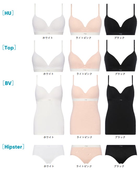 ソフトな肌ざわりのオーガニックコットンで毎日快適に!スロギーに新たなカジュアルシリーズが加わります。[HU]と[BV]は、左右一体型のクッションカップがバストを支え、ノンワイヤーでも美しいシルエットをキープ。[Top]は自然な丸みのモールドカップがバストを美しく整えます。すべてストラップはアジャスターで長さ調節が可能です。