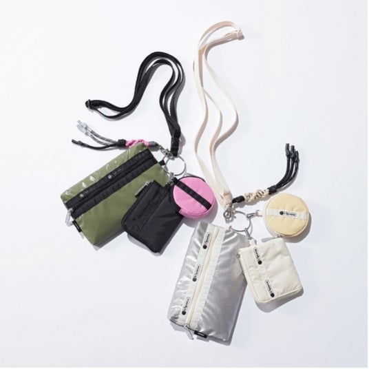 スマホがしっかり収まるサイズのポーチ、ミニウォレット、サークルポーチの3つとコードチャームがセットになったミニショルダーバッグ。取り外してそれぞれ単品でもシーンに合わせてフレキシブルにお使いいただけます。これ一つで身軽にお出かけできるアイテムです。