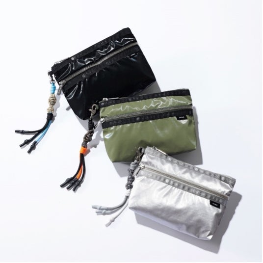 マチ付き&Wファスナー仕様で小分けがしやすく、レスポートサックでも定番人気のポーチをAmeriらしいデザインに。ビンテージ感あるメタルジッパーとオリジナルのコードチャームが付いています。デイリーにもトラベルにも活躍、そのまま持ち運んでクラッチバッグとしてもお使いいただけます。
