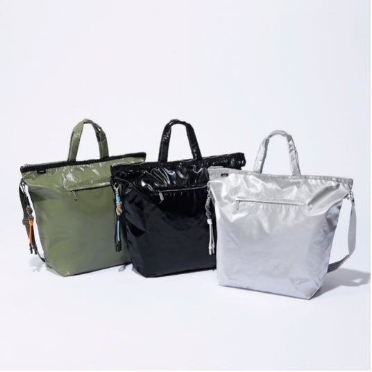 左:DX Easy Carry TTE W/CHRM〔Khaki Shine AM〕 H38×W29×D14cm 20,900円(LeSportsacのみでの展開)