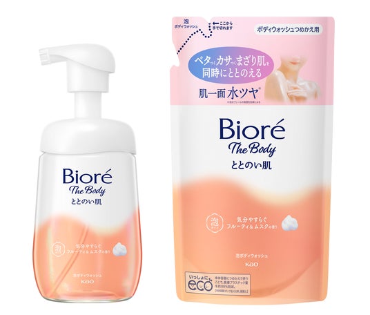 『ビオレ ザ ボディ ととのい肌』は、【世界初*2】花王独自の皮脂選択洗浄成分*3 を配合したボディウォッシュです。肌のうるおいに必要な皮脂は残し、肌に悪影響を与える不要な皮脂を洗い流す、“皮脂選択洗浄技術”を搭載し、背中はベタつくのにスネは乾燥するといった、からだの異なる肌悩みを抱える「ベタカサまざり肌*4」を、やさしく洗います。