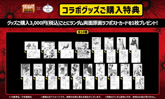 コラボグッズご購入3,000円(税込)ごとに両面原画ラフポストカードをランダムで1枚プレゼント!