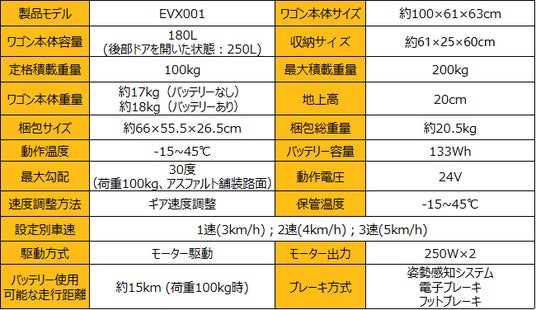 3.業界トップレベルの走行距離:最大20km 「BougeRV 楽GoWagon」は、25.55Vという高圧三元系リチウムイオン電池を採用しており、133Whの大容量により、積載物がない状態での自社試験で業界最高水準の最大20kmの走行距離を達成しました。