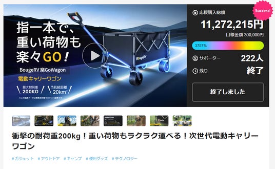 2024年12月16日(月)から実施した「BougeRV 楽GoWagon」Makuake特別先行販売が、2025年2月5日(水)をもちまして、無事に終了いたしました。