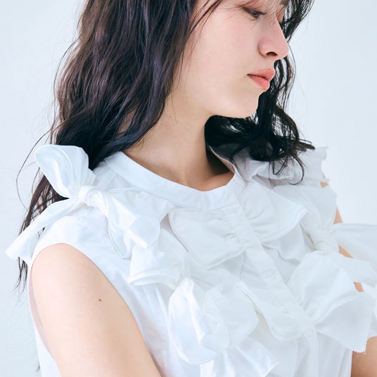 共生地リボンモチーフノースリーブブラウス¥29,700