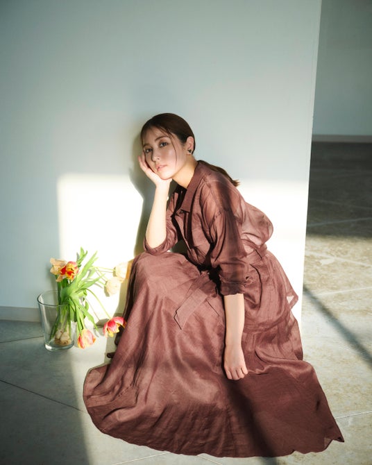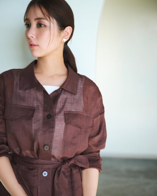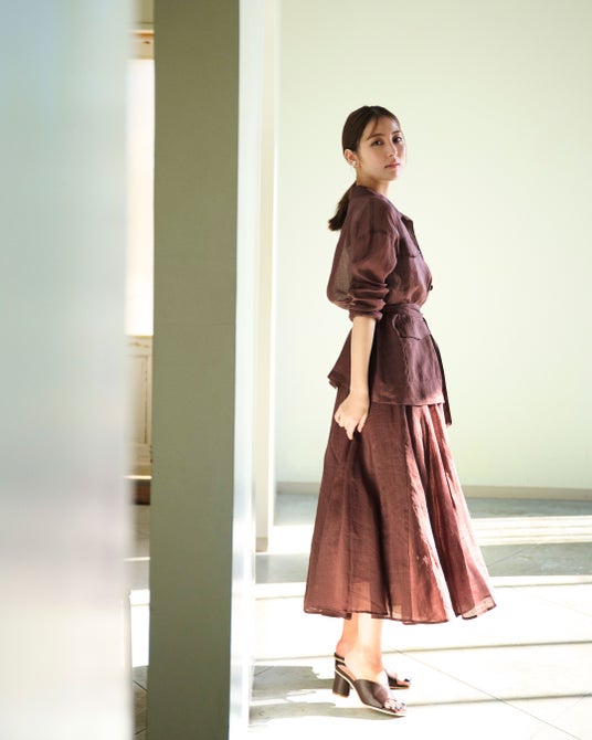 5.エレガントなリネンのセットアップはビターなブラウンの選択で鮮度が宿る