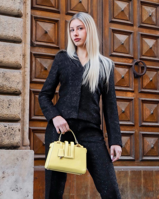 LWG認証を受けた最高級のイタリアンレザーを使用し、エメルダバッグはサステナビリティと卓越した品質を兼ね備えています。その鮮やかなイエローは、エネルギー、活力、創造性を象徴し、温かみと個性を放ちながら、優雅さと独創性を求める方に最適です。太陽の光がすべてを照らすように、この輝かしい色彩はダイナミズムと再生を感じさせつつ、時を超えた洗練を湛えています。