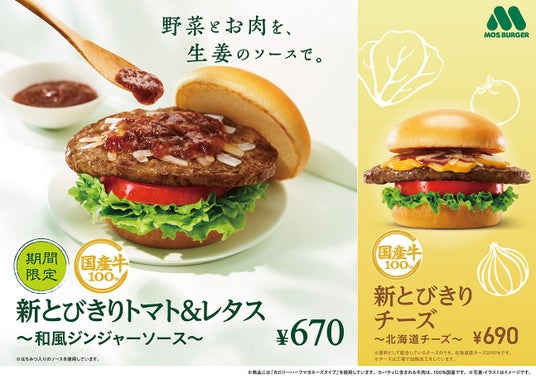 モスバーガーを展開する株式会社モスフードサービス(代表取締役社長:中村 栄輔、本社:東京都品川区)は、2025年3月19日(水)~5月中旬まで、全国のモスバーガー店舗(一部店舗を除く)にて、「新とびきりトマト&レタス ~和風ジンジャーソース~」を期間限定で新発売します。同時に“新とびきり”シリーズのパティが2枚になった“ダブル”も販売開始します。