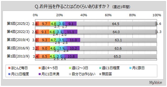 マイボイスコム株式会社(東京都千代田区、代表取締役社長:高井和久)は、5回目となる『お弁当』に関するインターネット調査を2025年2月1日~7日に実施しました。