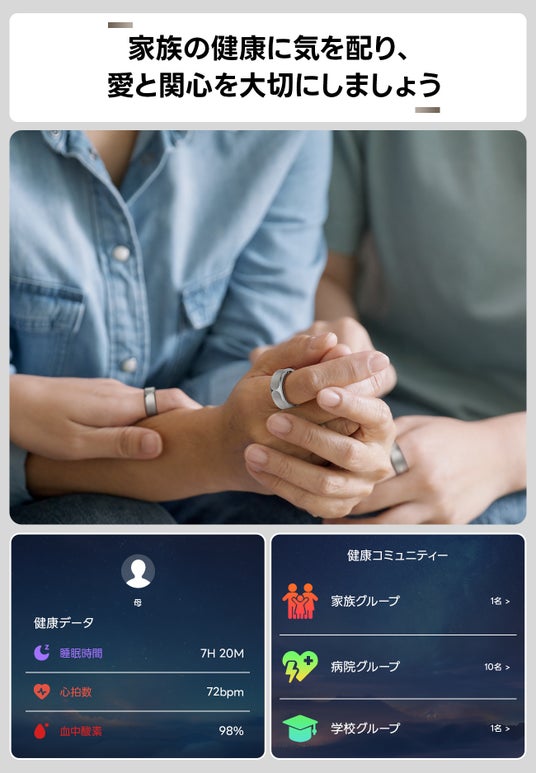 RingXスマートリングを使用すると、家族との絆も深まります。健康データを共有することで、遠く離れていてもお互いの健康状態を気遣うことができます。