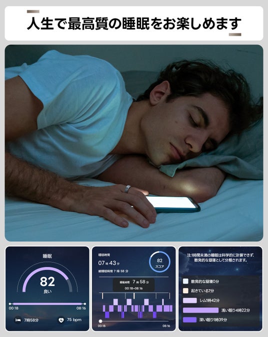 重さわずか3g、500円玉サイズのリングは持ち運びにも大変便利です。そのコンパクトなデザインは快適なフィット感を保証し、寝ているときでもそれを感じさせず、自由で快適な体験を楽しむことができます。
