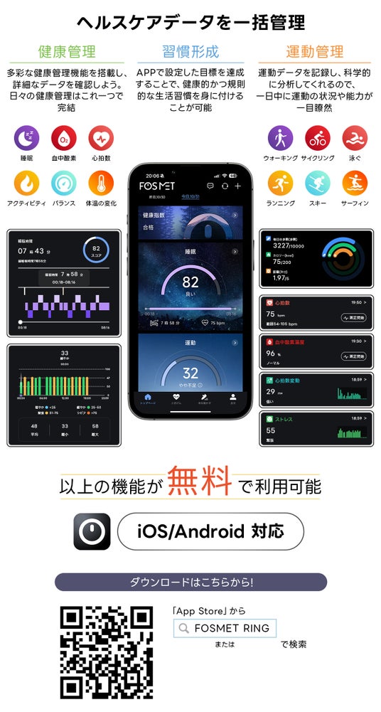 FOSMETは健康でバランスの取れた生活を実現するための取り組みにおいて、自己測定の力を大切に考え、RINGXは日々の健康データを指先から簡単かつ正確に記録し、心身のバランスを整えるお手伝いをします。